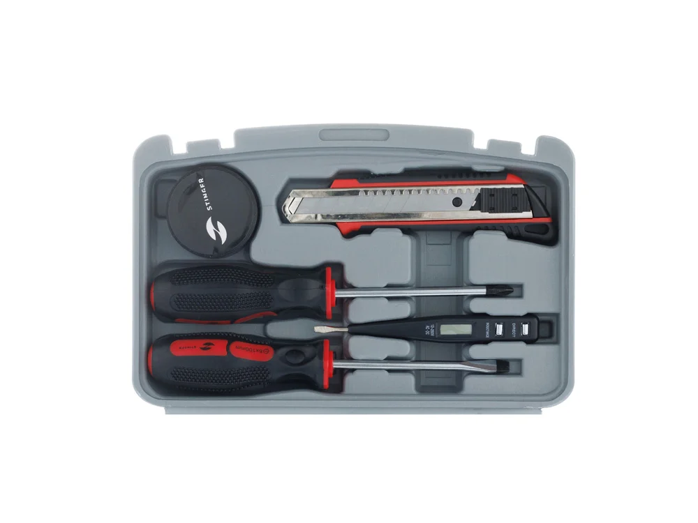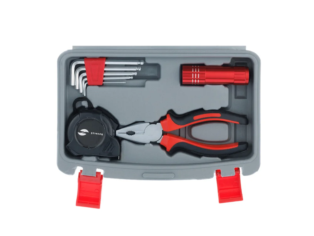 С набором инструментов STINGER NST128014 на 13 предметов можно быстро и эффективно решить любую хозяйственную задачу. Этот набор идеально подойдёт для осуществления мелкого ремонта по дому, починки бытовой техники, сборки мебели и выполнения множества других задач. Все инструменты упакованы в пластиковый кейс серого цвета с надёжными фиксаторами. Рабочие части каждого изделия выполнены из высококачественной закаленной углеродистой стали с хромированным покрытием, а рукоять - из мягкого нетоксичного пластика.