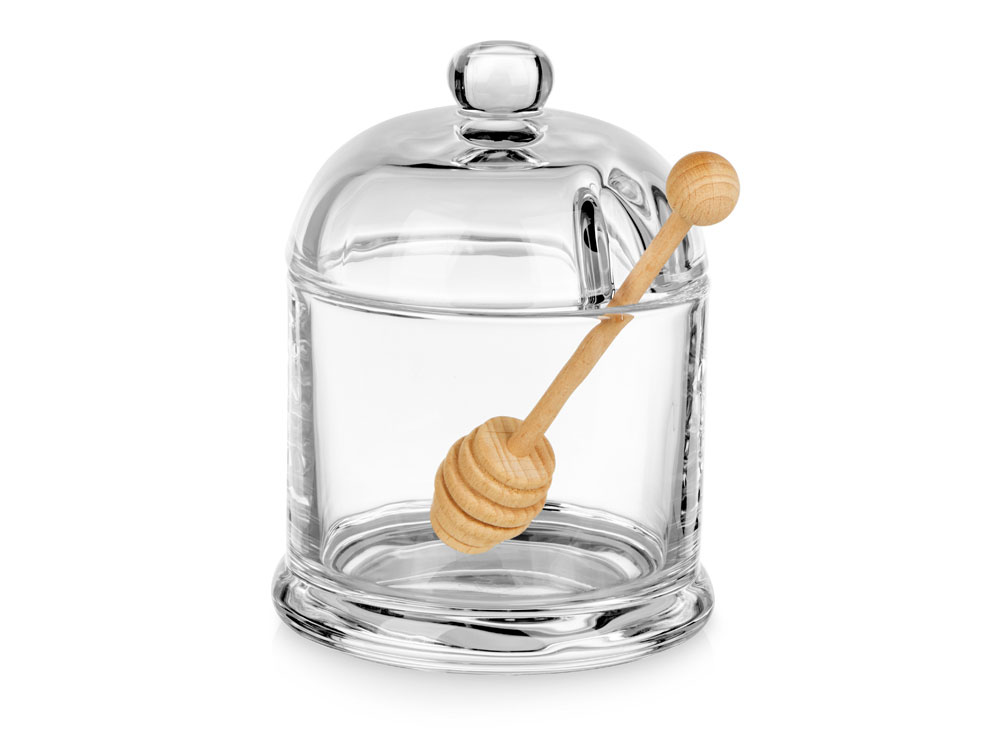 - Стеклянная емкость для меда с ложкой Vira