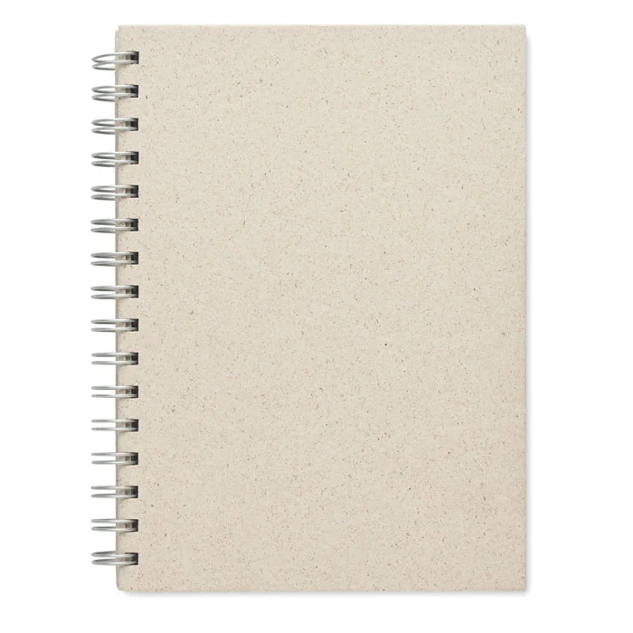 Блокнот A5 на пружине в картонной обложке, 80 линованных листов из бумаги содержащей семена травы (40%). Сделано в ЕС.