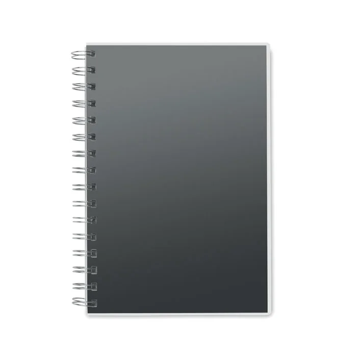 Блокнот формата A5 на спирали в обложке из переработанного пластика (RPET). 80 линованных страниц.
