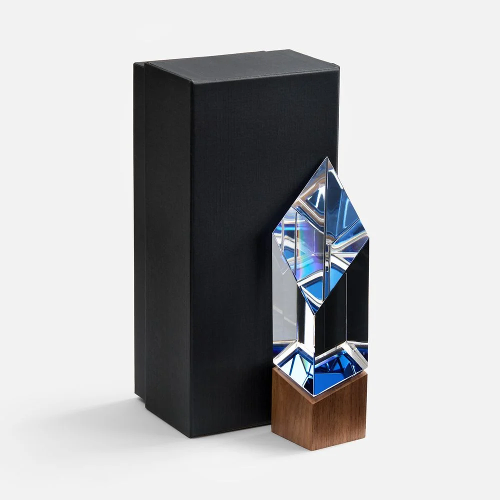 Эффектная стела на лаконичном деревянном постаменте Vincero создана для тех, чье дело сверкает разными гранями, а победный дух всегда ведет за собой! Внутри призматической стелы создается притягательная оптическая иллюзия, которая придает ей дополнительный объем и весомость. Такая геометрическая магия и игра света зачаровывают, воплощая собой все стороны таланта, которые привели получателя награды к заслуженному успеху.