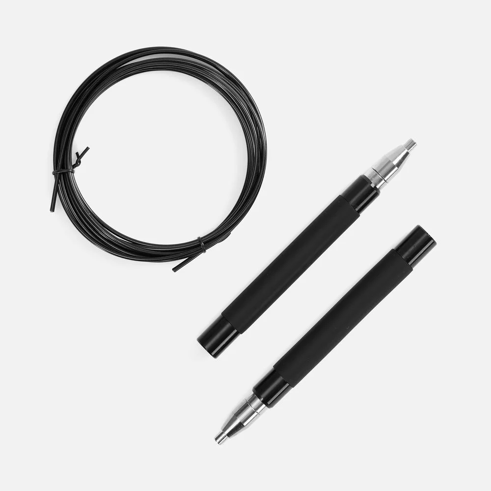 Легкие эргономичные алюминиевые ручки обеспечивают удобный захват, а полиуретановое покрытие предотвращает выскальзывание. Трос с сердцевиной из стального кабеля с гладкой оплеткой из ПВХ не запутывается при скоростном кручении, обеспечивая высокий контроль и управляемость. Система поворотных подшипников, установленная в ручках скакалки, обеспечивает равномерное вращение шнура на 360°.